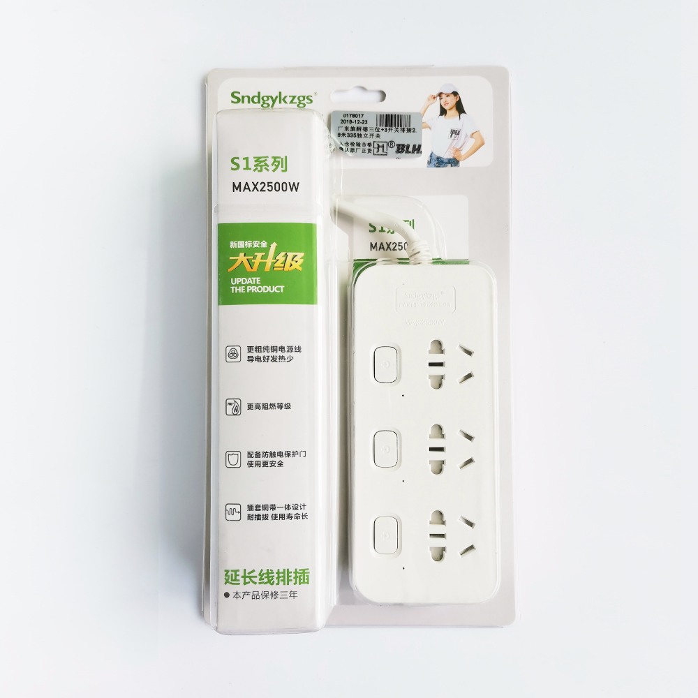1.8米/2.8米/4.5米  三位+3獨(dú)立開關(guān)排插